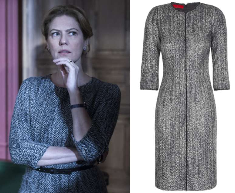Em sétimo lugar, está Angela (Patricia Pillar), de O Rebu, com vestido cinza, da marca CH Carolina Herrera. Preço: R$ 3.040. Informações: (11) 3552-7777