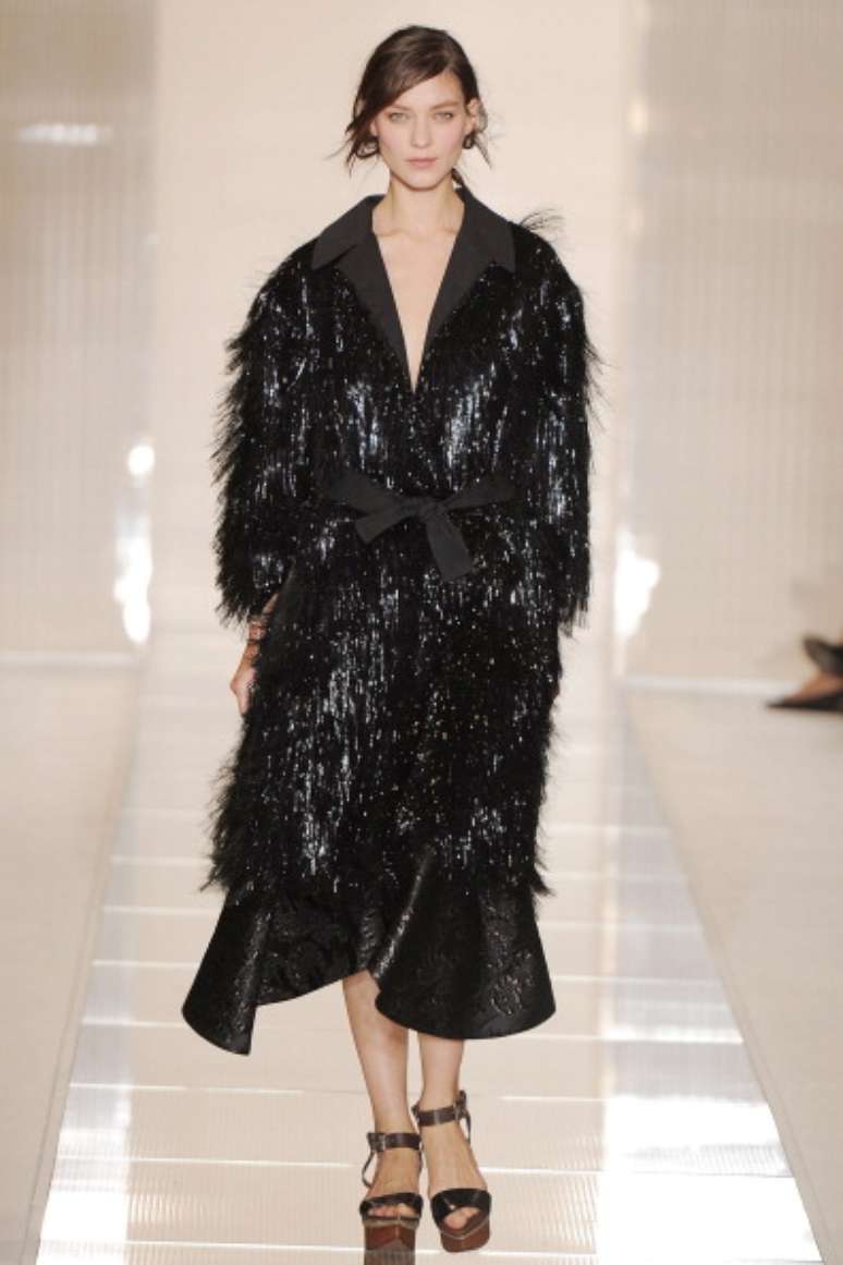 Na passarela, a marca italiana mostrou uma coleção primavera / verão 2013 com estampas geométricas, tecidos com texturas e, principalmente, recortes e estrutura que davam a sensação de roupas com mais volume.