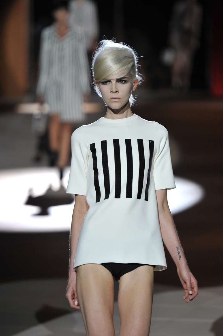 Marc Jacobs abandonou o romantismo e apresentou na segunda-feira (10) uma coleção ousada na semana de moda de Nova York, com listras hipnotizantes, submetidas à extrema velocidade.