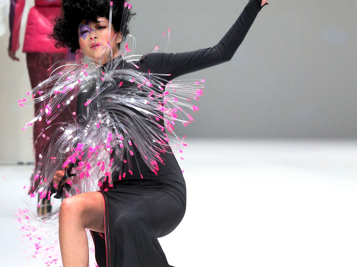 Ela entrou na passarela com um longo vestido preto, com fenda frontal, e uma peruca cacheada que tampava o olho esquerdo. Nos pés, sapatos na cor pink, fechados, que não sustentaram a top no momento do tombo. Veja a seguir outras quedas de modelos