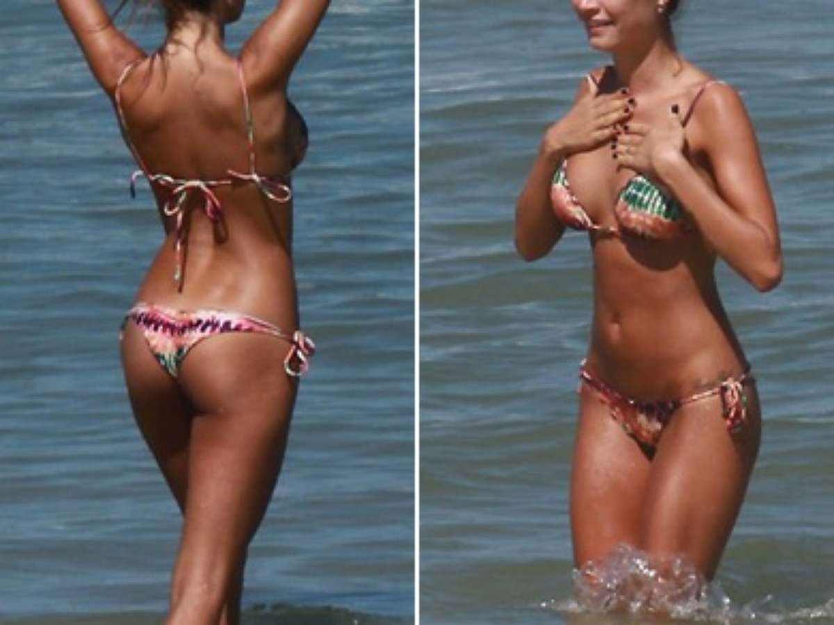 Thaila Ayala entra no mar com biquíni manchado criado por Paula Hermanny: grife abriu primeira loja no Brasil no ano passado