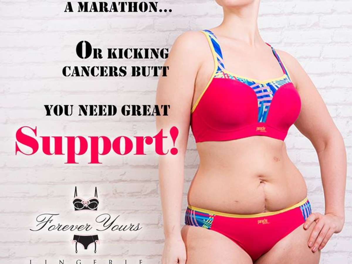 Após a cirurgia e o tratamento, ela voltou a posar e o slogan é "Se você está treinando para uma maratona ou lutando contra o câncer, você precisa de um bom suporte (sutiã)"