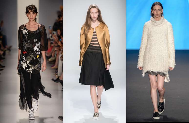 A estação é também tempo de reeditar clássicos. É o caso do tênis de corrida, aquele modelo antiguinho, bem retrô, que tem um solado branco básico de borracha. Nessa onda, vale desde o mais esportivo dos modelos até as versões com estampa camuflagem, feitos de lã ou com brilhos.