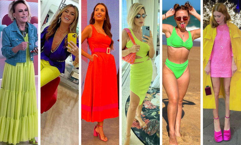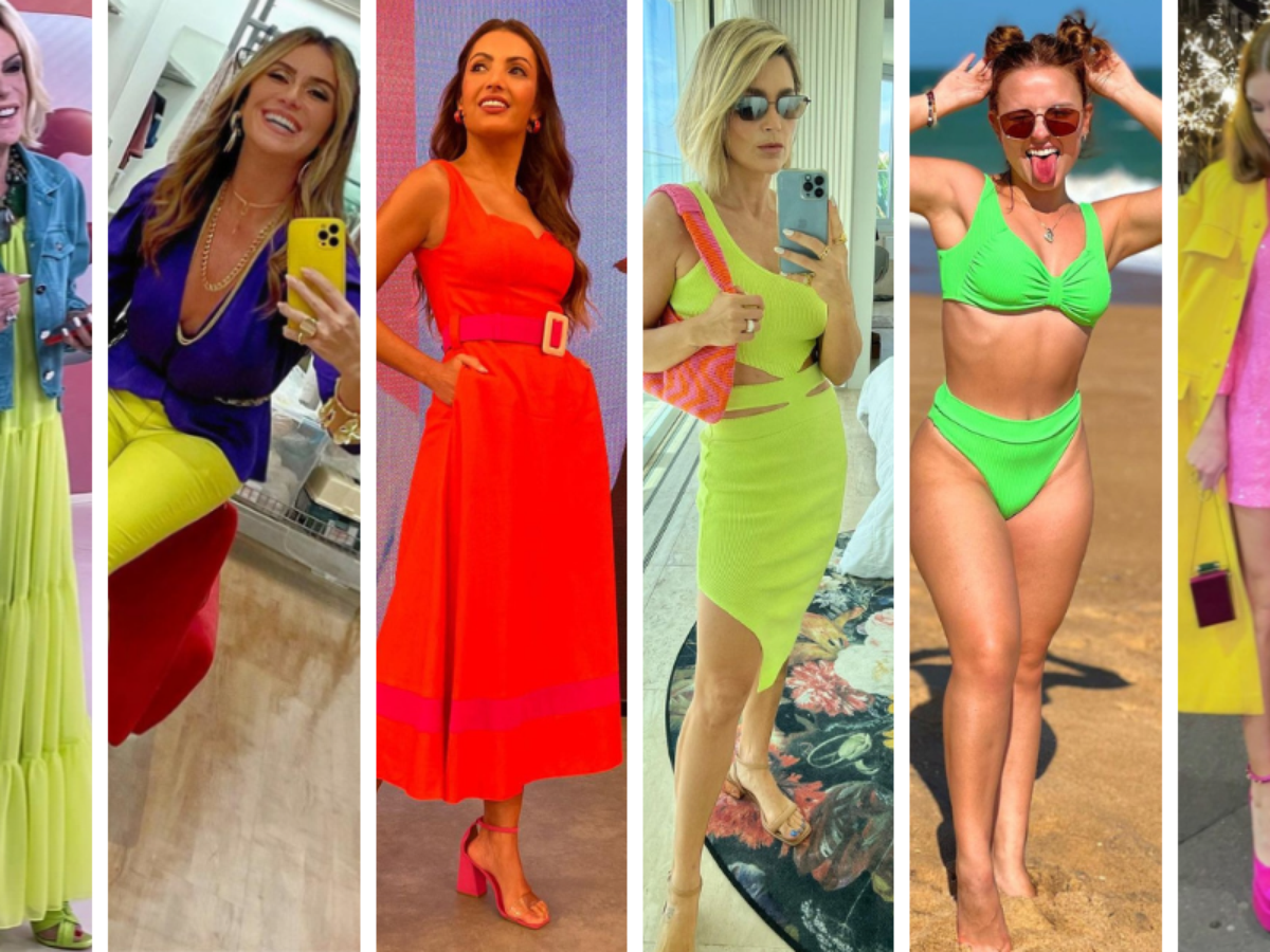 Os vários tons de laranja estão entre os mais vistos quando se fala em neon, como nos looks de Flávia Alessandra, Patricia Poeta e Ticiane Pinheiro. Veja que as famosas combinam o laranja com outros cores, como fizeram Flávia e Patrícia.