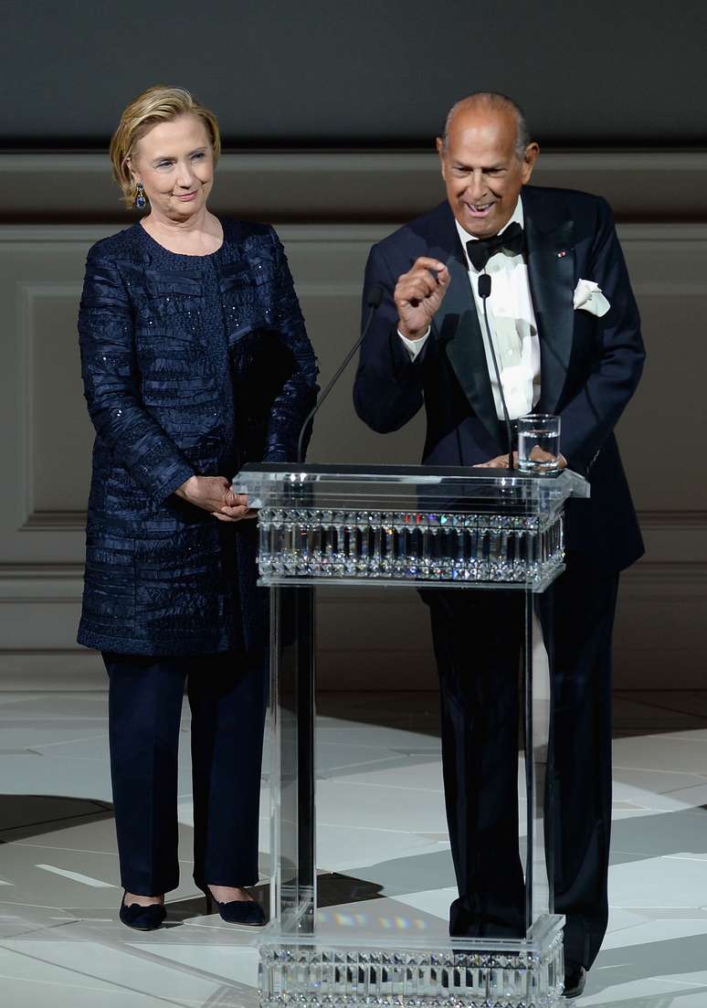 Em 2013, Hillary Clinton usou calça de alfaiataria e casaco do estilista para entregar o prêmio Founders Award a Oscar De la Renta por sua carreira, no CFDA Awards.