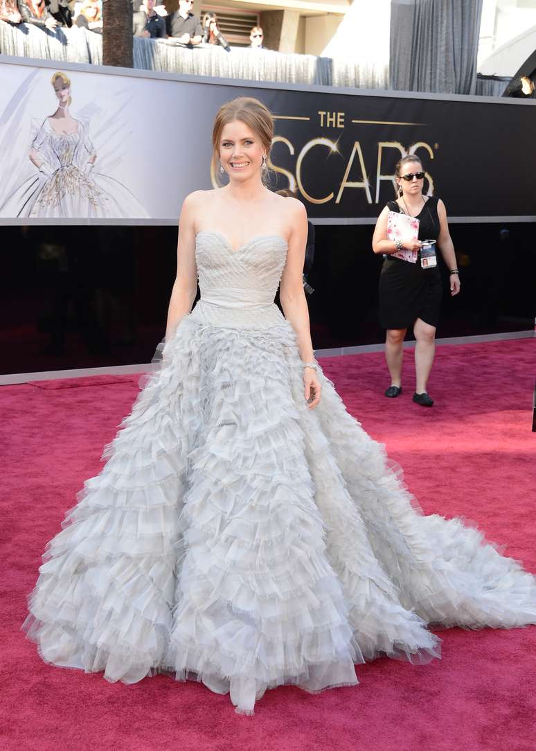 No Oscar 2013, Amy Adams optou por tomara que caia com saia volumosa, assinado pelo estilista.