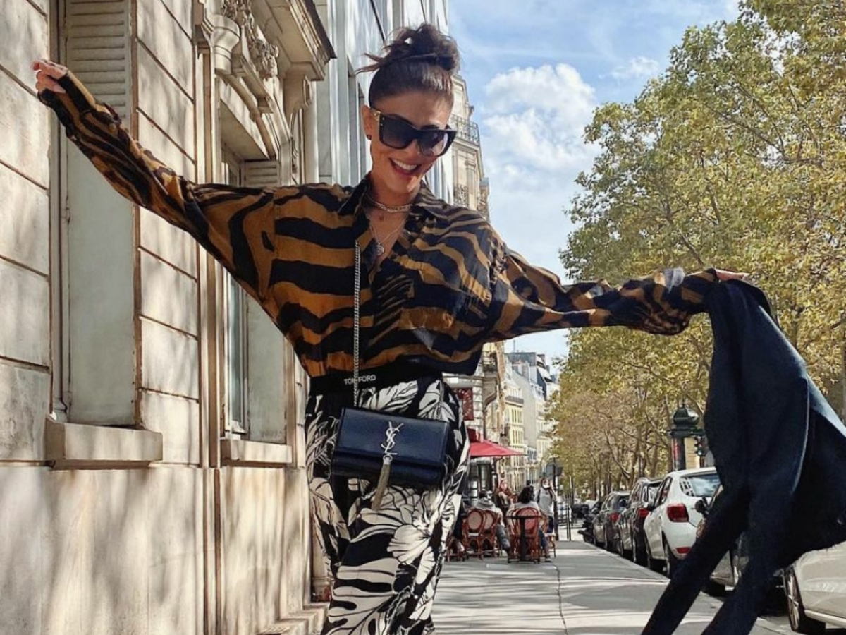 Paris: Ju Paes chama atenção com estampas e look dominatrix