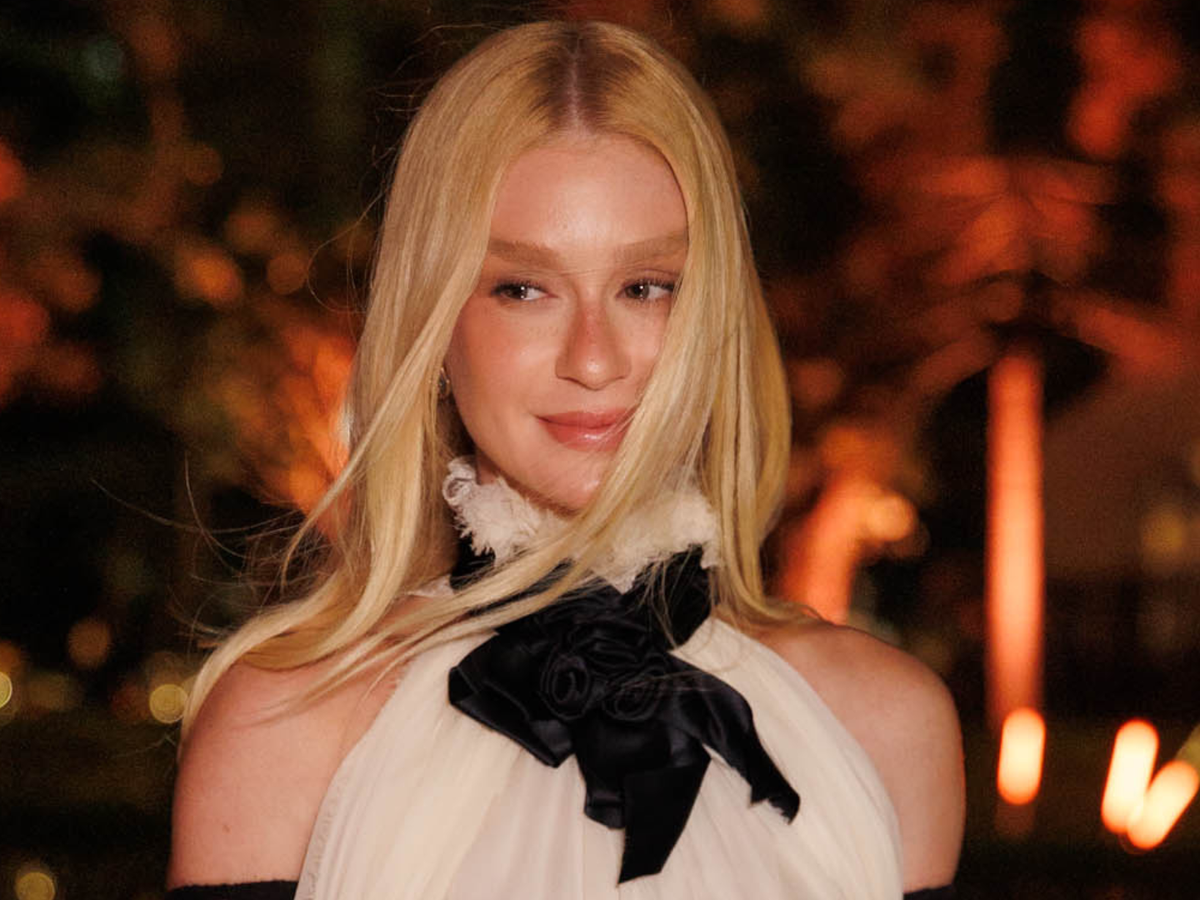 Bianca Comparato provou a elegância do look branco, com casaqueto e saia longa plissada.
