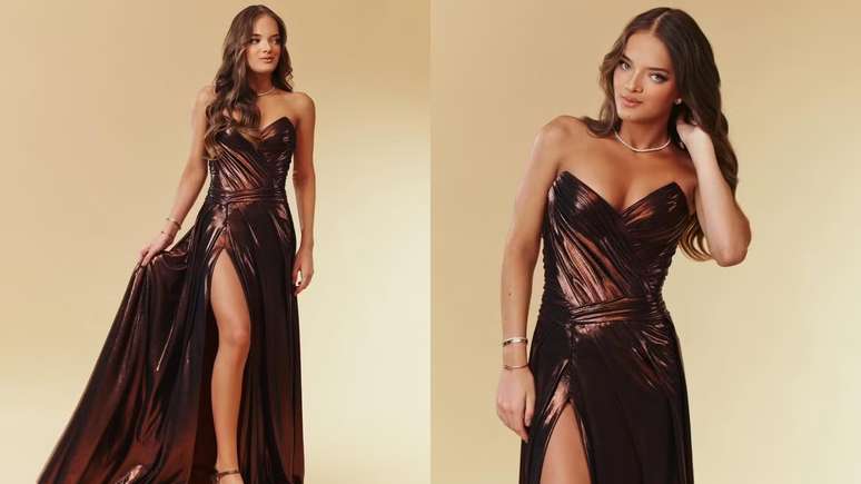 No entanto, para completar seu visual sofisticado, Rafaella optou por sandálias de tiras delicadas, um colar brilhante e uma maquiagem que ressaltava seus olhos claros e realçava seus lábios com tons neutros. Seus cabelos estavam soltos, adornados com cachos suaves, complementando o look ideal para uma ocasião tão especial. Em uma publicação nas redes sociais, a jovem expressou: "Pronta para uma noite especial".