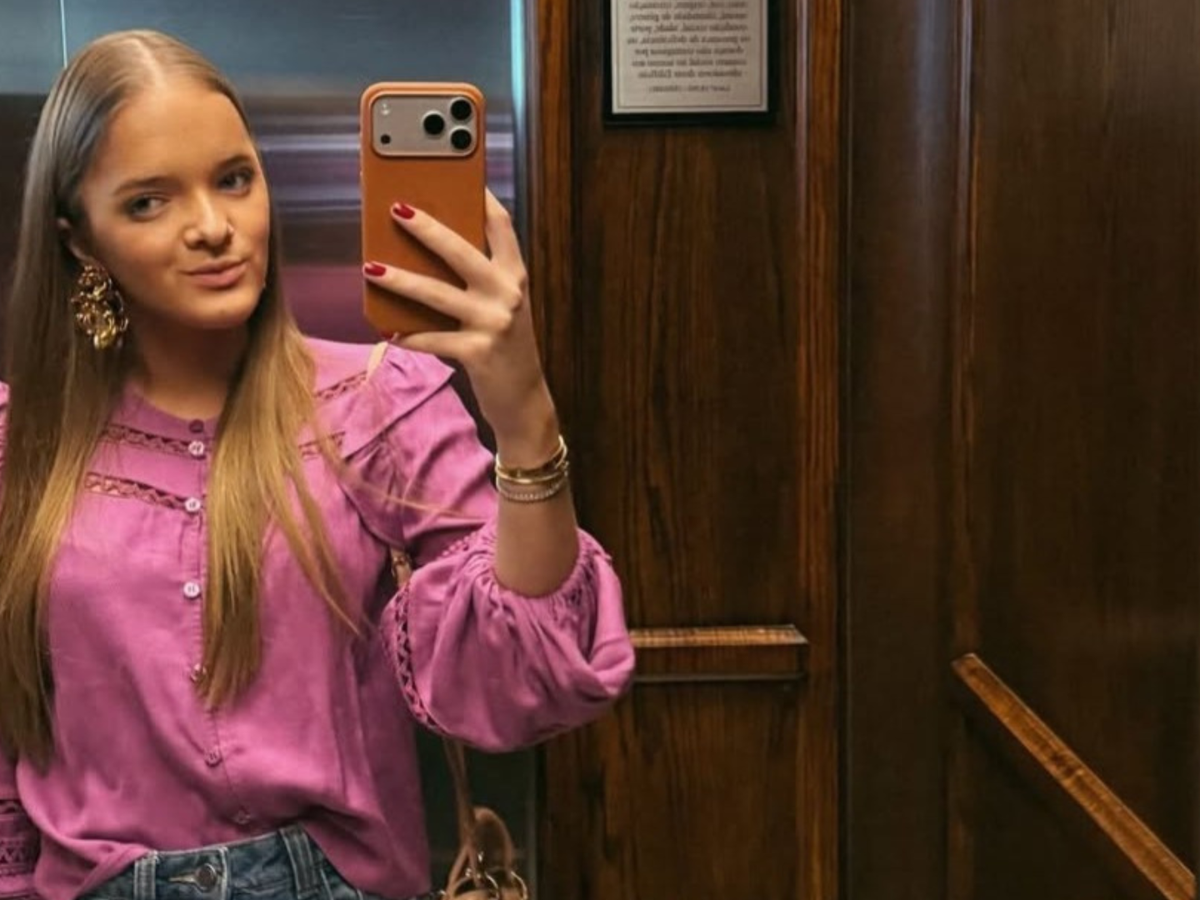 A filha da Ticiane Pinheiro e do Roberto Justus escolheu blusa rosa com babado no ombro, manga bufante 7/8, fechamento frontal por botões e aviamentos acima do busto. Está à venda no site por R$ 928.