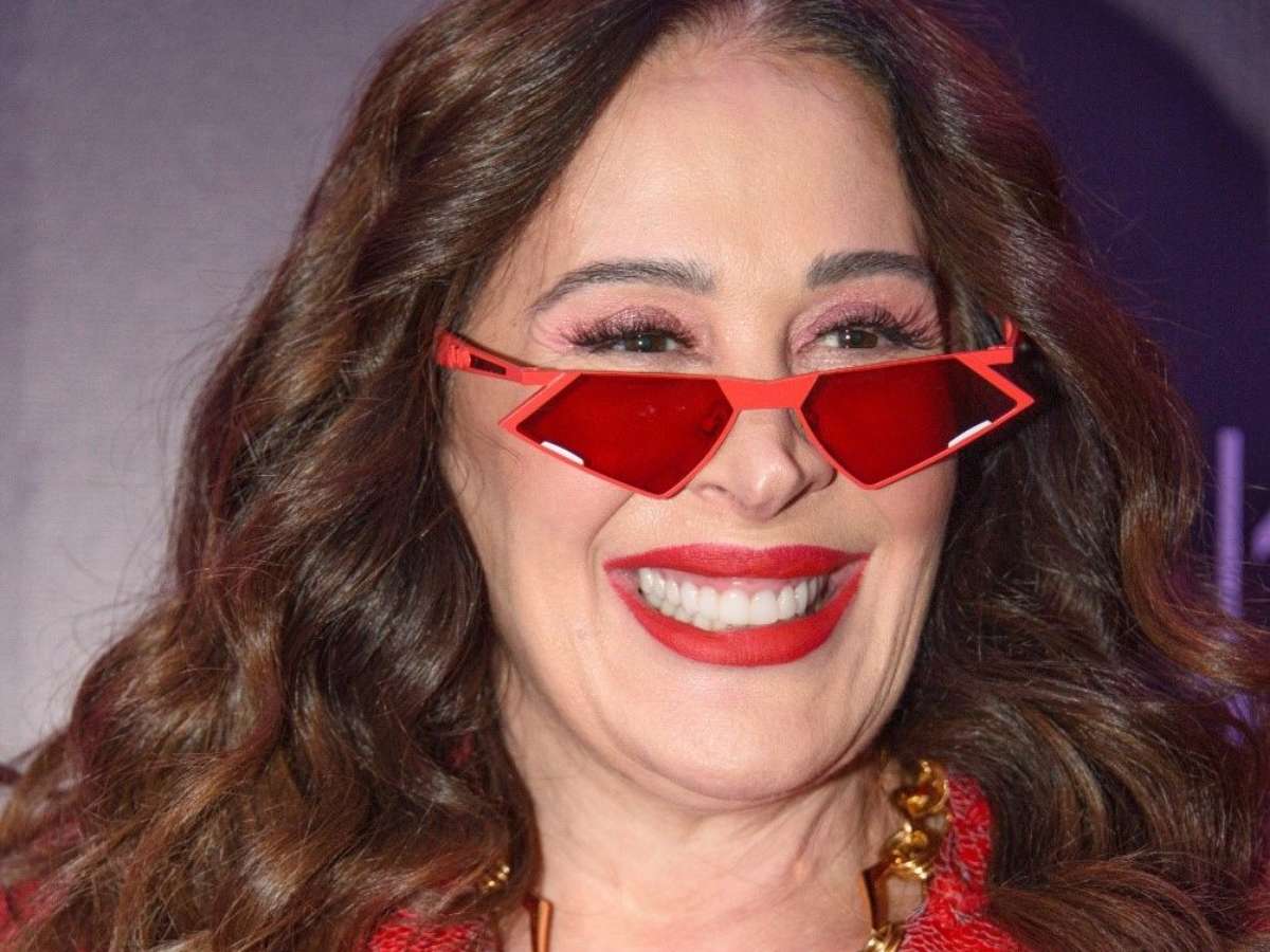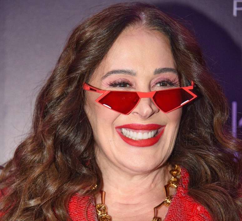 A atriz Claudia Raia apostou em complementos como bolsa e colar dourados e, na onda do vermelho, óculos de formato geométrico, dando um ar ainda mais moderno à produção.