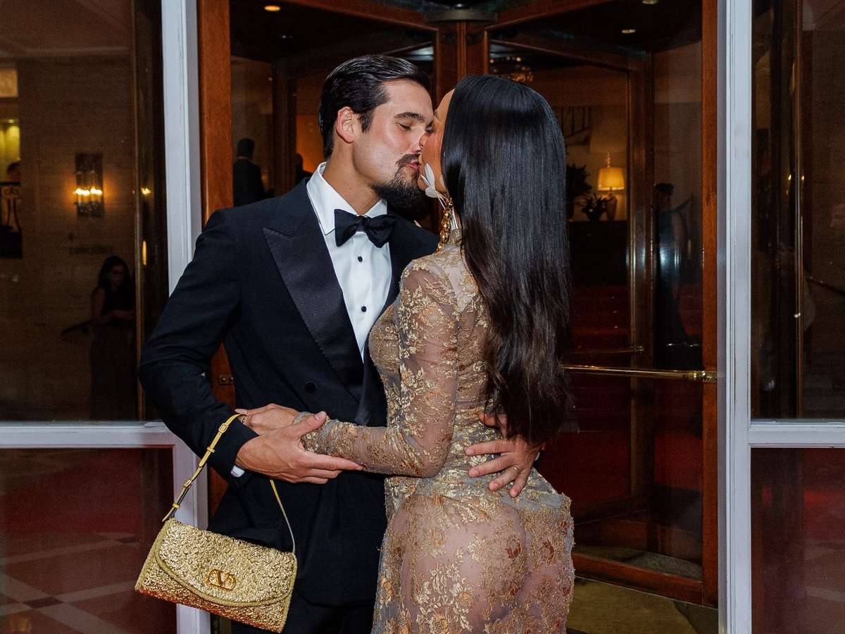 Para a ocasião, Sabrina escolheu um vestido da Valentino que equilibra sensualidade e sofisticação. O modelo longo, em renda dourada envelhecida, traz transparência na medida certa e drapeados que desenham a silhueta de forma escultural. As mangas longas e a gola alta adicionam informação de moda e um toque dramático, enquanto a textura floral reforça a delicadeza da peça.