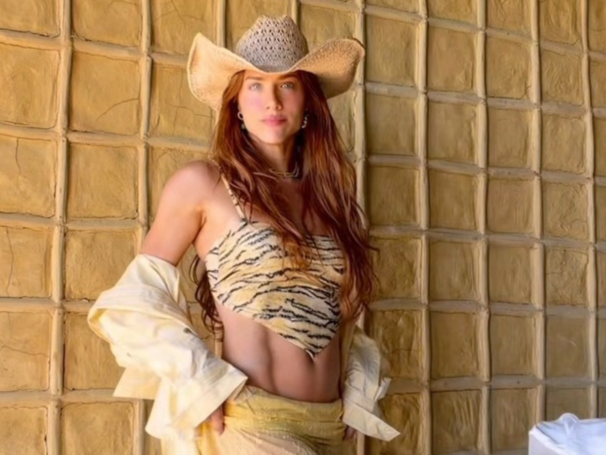 - Marina Ruy Barbosa apostou em saia de crochê marrom, com a transparência do vazado da trama, além de rolotê. Feita à mão pelo Ateliê Mão de Mãe, custa R$ 899. O top de biquíni tem padrão em chevron em tons terrosos com um leve efeito cintilante (R$ 299), da Calzedonia.