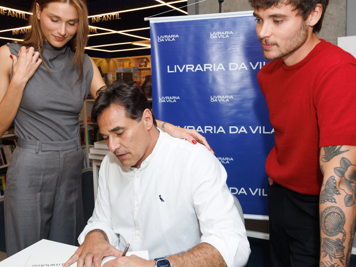 Sasha vestiu cinza para prestigiar o lançamento do livro do pai, na segunda-feira (6), em São Paulo. Luciano Szafir autografou "Por favor, me dê mais 15 minutos". João Lucas também estava presente.