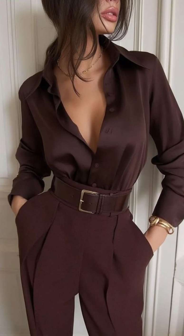 Se você ama um brilho, essa dica é para você. O marrom chocolate fica perfeito quando acompanhado de acessórios em dourado.