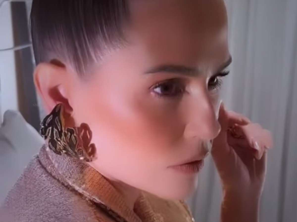A atriz complementou o look com brinco Hector Albertazzi e coque alto na cabeça, recurso que ajuda a alongar a silhueta.