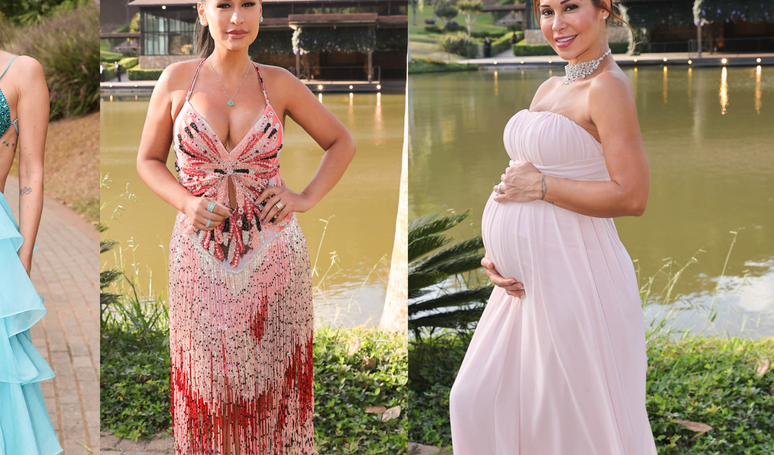 Já a grávida Maíra Cardi mostrou como unir conforto e sofisticação: de vestido plissado rosa claro e gargantilha de brilho, provou que a moda também pode abraçar momentos especiais da vida. Tata Estaniecki, por sua vez, optou por um vestido azul-claro de decote profundo, com laço preto marcando a cintura, completado por clutch preta e joias discretas.
