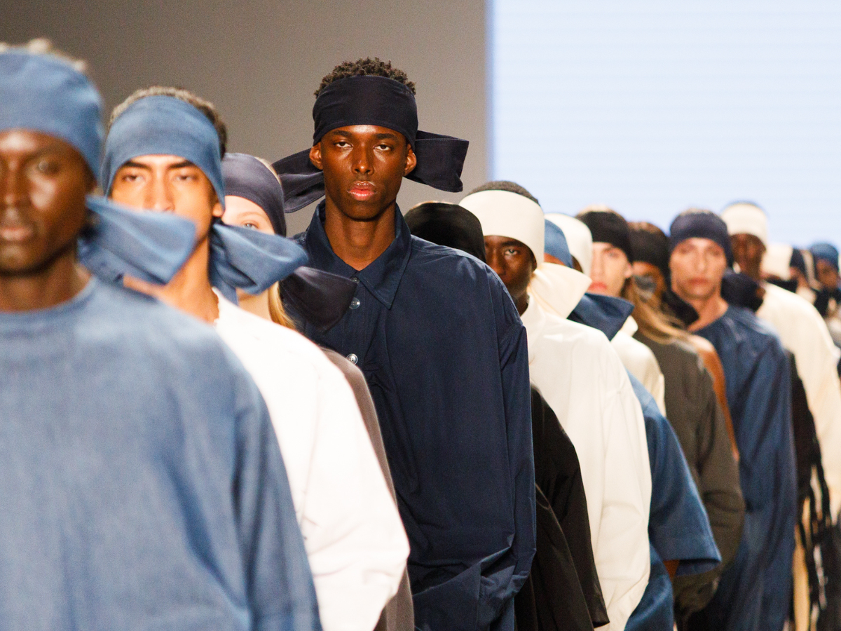 Os looks vinham, porém, sem as tradicionais estampas street, também sua marca registrada, mas lisos, em denim ou claros, off-white, preto, cinza ou branco. Não faltaram as sobreposições, as modelagens amplas e os babados em modelos diversos.