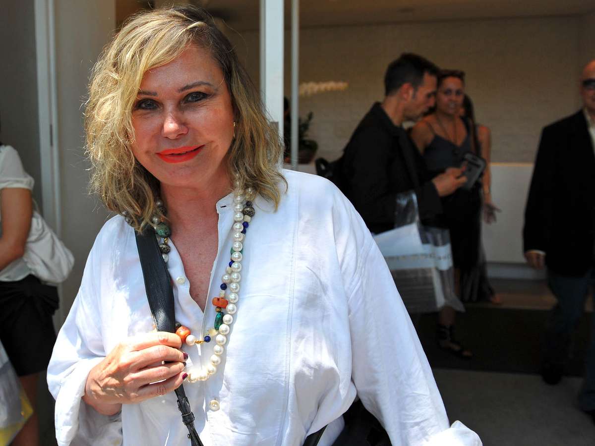 Costanza Pascolato chegando para o início dos desfiles no Parque Villa-Lobos