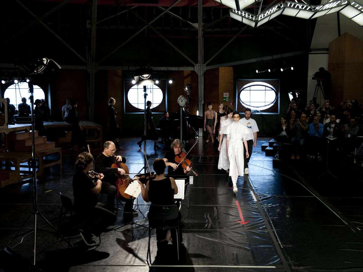 Sala de ensaios da orquestra do Theatro Municipal de São Paulo foi a passarela escolhida por Alexandre Herchcovitch para mostrar a coleção feminina no SPFW
