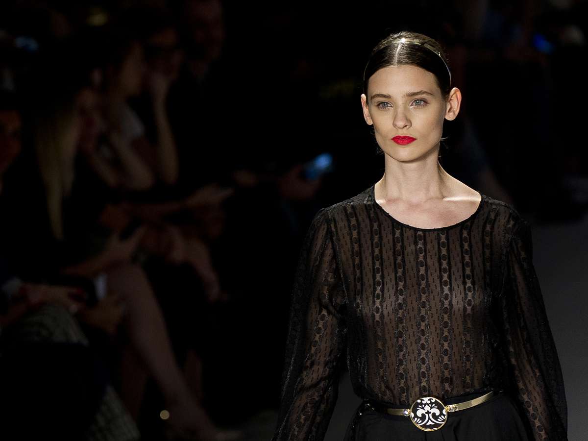 Carolina Thaler no desfile da Têca no SPFW