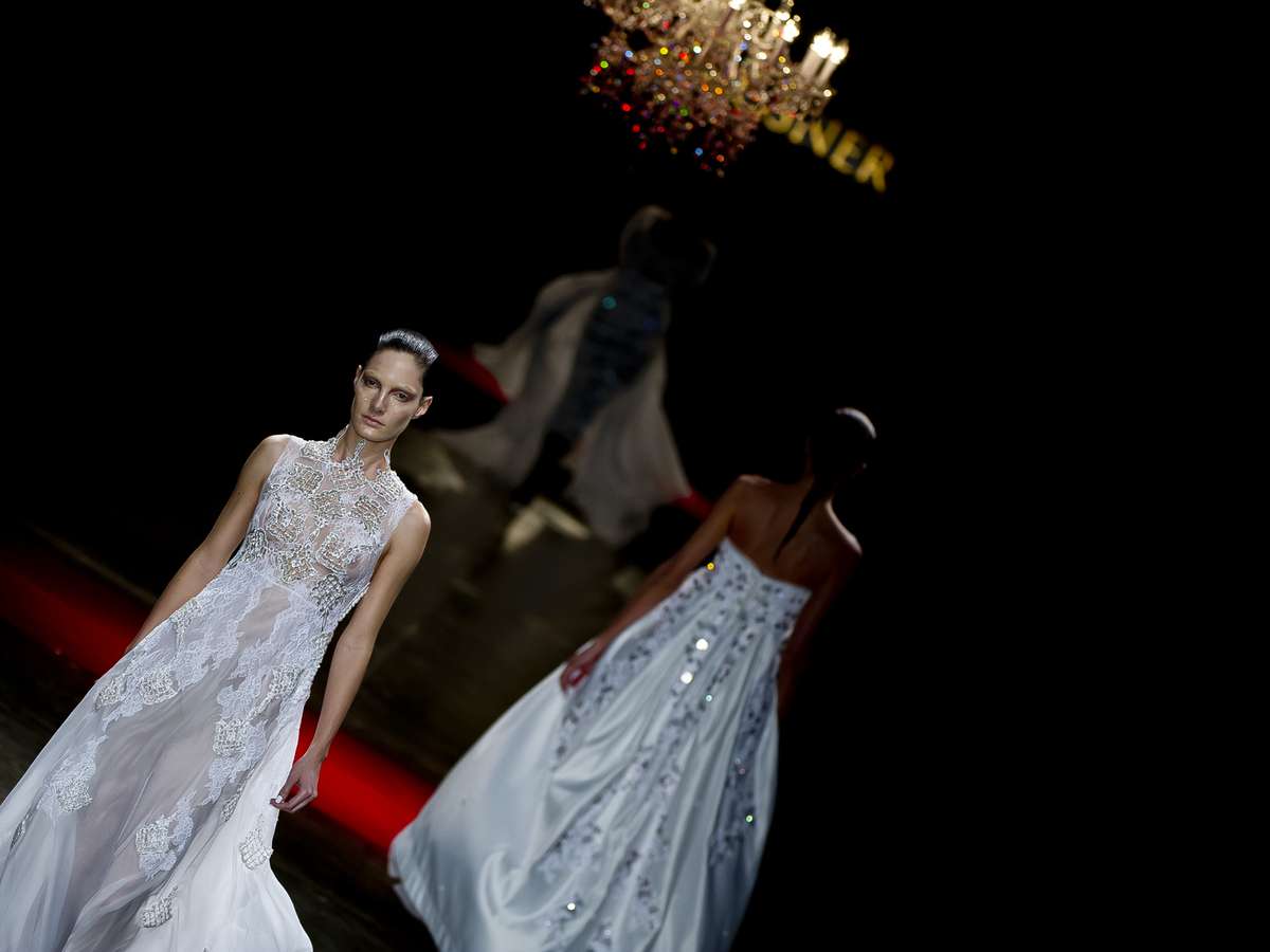 No começo, vestidos brancos, depois beges, verdinhos-acinzentados, rosáceos, vermelhos... e pretos. O estilista Rodrigo Rosner pesou a mão nos volumes, principalmente na região dos quadris, com babados, sobreposições e plumas de avestruz, em uma silhueta difícil para mulheres que não vêm das histórias de princesas encararem.