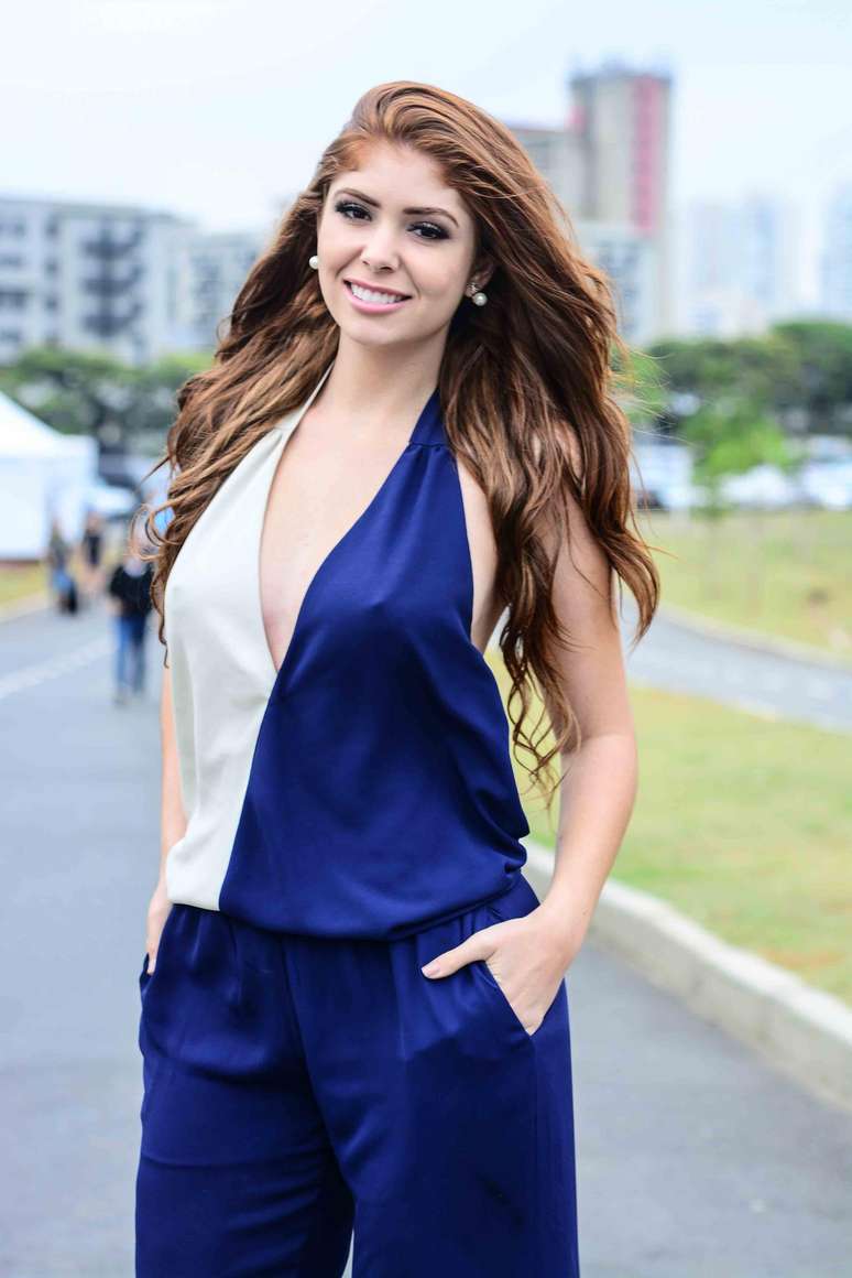 Amanda Gontijo, que participou da última edição da reality show, deixou o sutiã em casa e acabou ficando com "farol aceso" ao posar no vento com macacão frente única decotado.