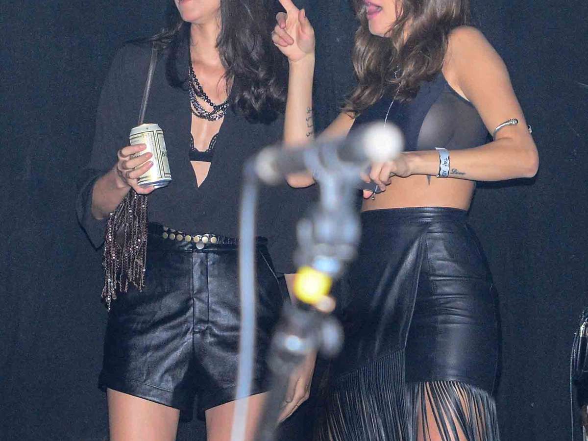Acompanhada de uma amiga, a atriz vestiu um top preto que deixava parte do seio à mostra, e uma saia destacando suas curvas e pernas.