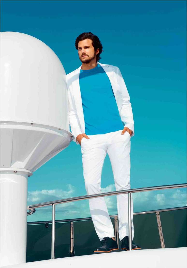 Já Kutcher foi clicado com camisa e blazer brancos e camiseta azul céu. As imagens foram feitas pelas lentes de Jacques Deckequer e a beleza ficou sob responsabilidade de Italo Gregorio e Carolina Gonzales