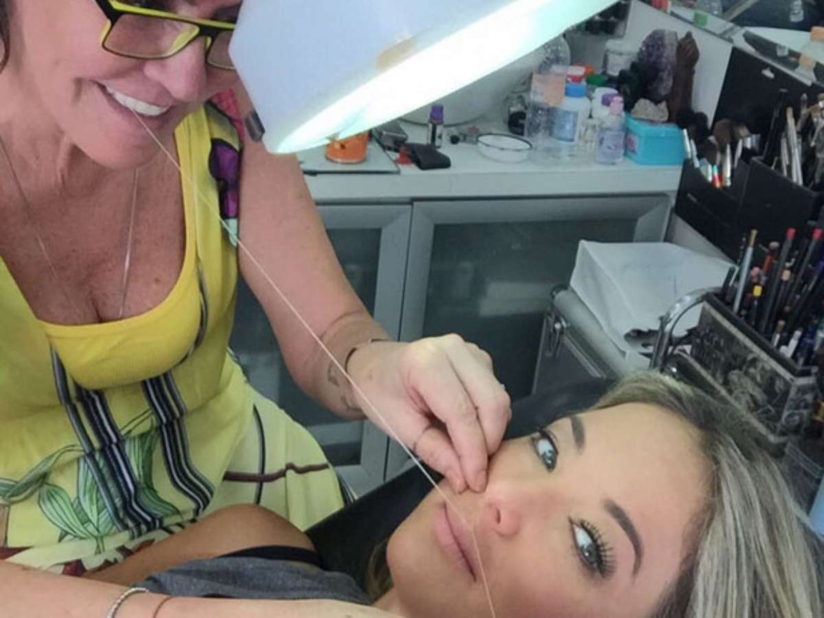 Ticiane Pinheiro resolveu compartilhar um pouco de sua vaidade no Instagram. Nesta quinta-feira (6), a apresentadora postou uma foto em um salão depilando o buço com linha. "Tirando o bigodõn", brincou ela na legenda.