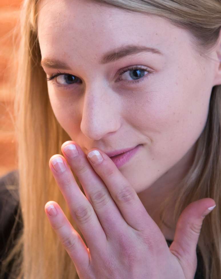 O desfile da Tibi, na Semana de Moda de Nova York, apresentou uma variação da francesinha tradicional, com traço mais grosso na ponta das unhas. Comece com uma camada de base. “Espere secar e use um esmalte branco cintilante para passar bem na ponta das unhas, fazendo quase uma meia-lua, mas deixando bem arredondado. Espere a secagem e passe uma camada de extrabrilho por cima”, ensinou a manicure Eliane Santos, do Crystal Hair.