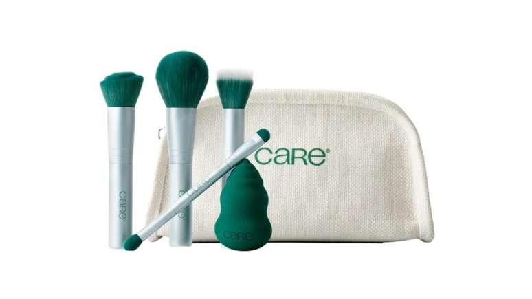 Com foco em beleza limpa, o kit da Care aposta em cerdas sintéticas, veganas e ultra macias, pensadas para oferecer leveza e alta absorção de produto.