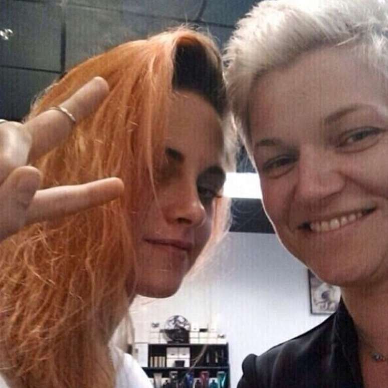 Kristen Stewart é mesmo uma camaleoa. A atriz, que já foi loira, ruiva e morena, usou fios curtos, médios e longos, agora surpreende ao surgir com o cabelo na tonalidade laranja.