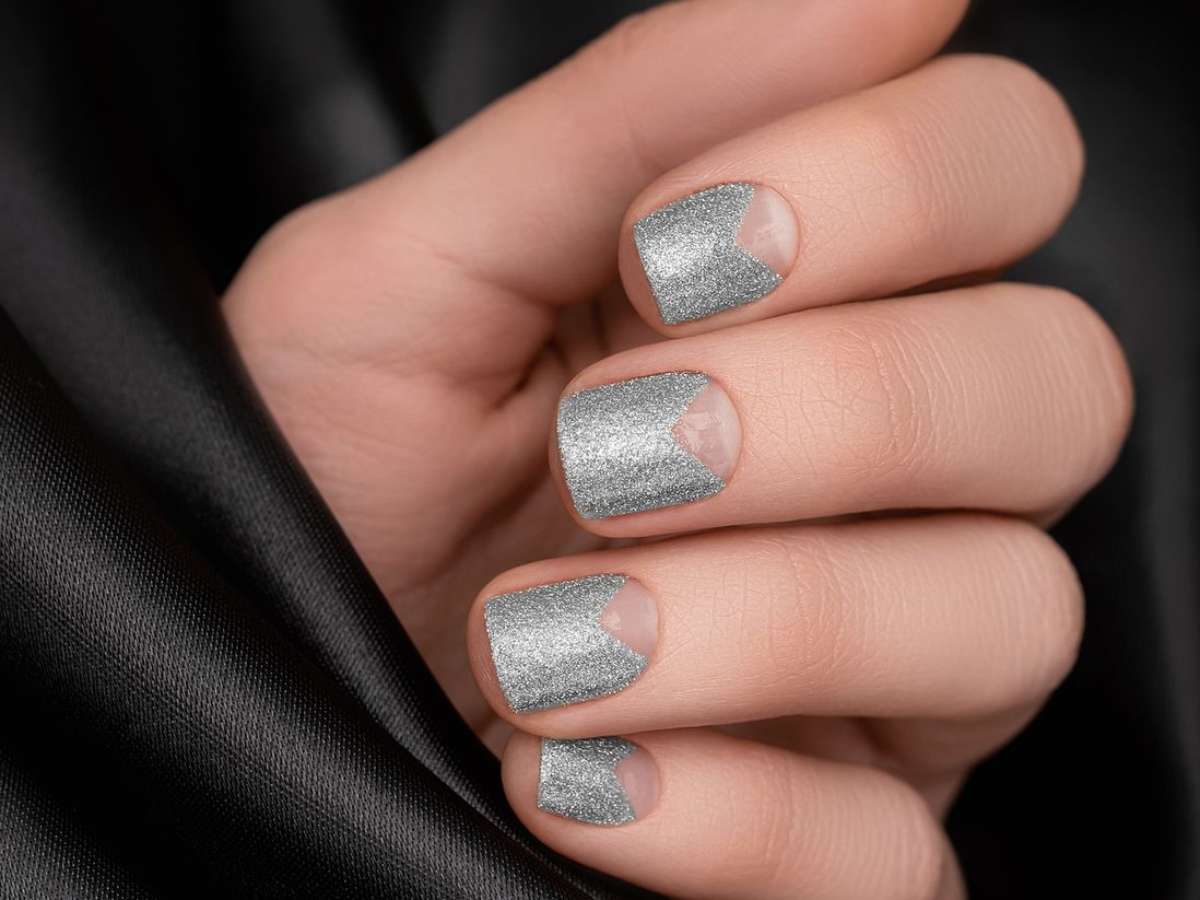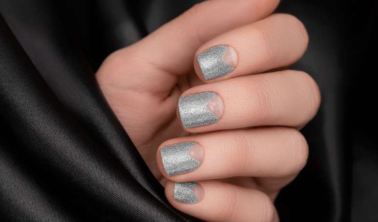 Ouro envelhecido, cobre queimado, prata líquida e bronze estão em alta. Em detalhe, francesinhas metálicas ou pontas invertidas. Vibe futurista soft — tipo clean girl que ama um toque de brilho.