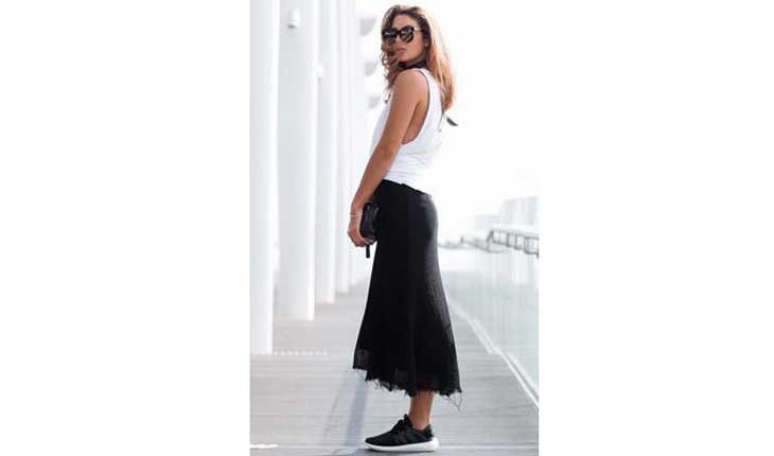 A grande dúvida na hora de montar o look com o calçado é quais peças combinam com ele. A sugestão de Adriana é usá-los com vestidos bohos, saias midis e calças mais "sequinhas", que deixem os tornozelos à mostra. E indica com quais roupas eles não caem bem. "Tênis esportivos têm volume, então nunca os use com calças muito largas e compridas tipo pantalonas", aconselha.