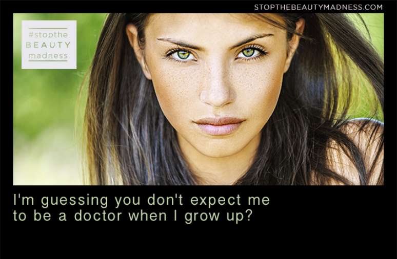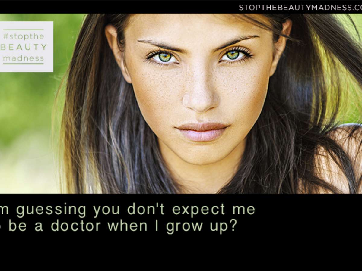 A campanha de Robin Rice, Stop The Beauty Madness, tem como objetivo criticar os padrões de beleza. "Acho que você não espera que eu seja médica quando crescer?" diz o anúncio