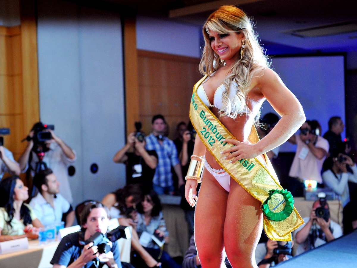 Carine Felizardo desfila com a faixa de Miss Bumbum Brasil 2012