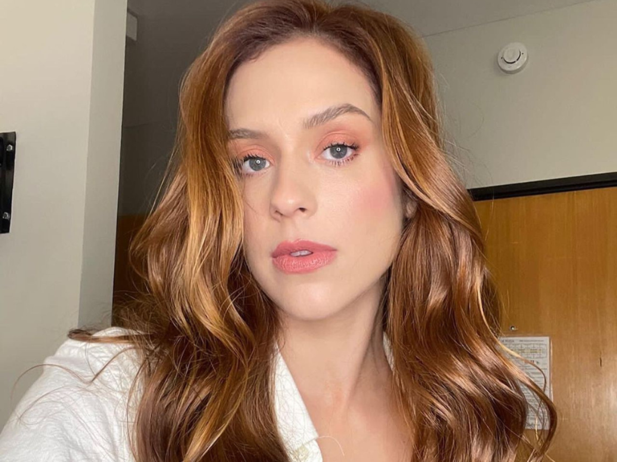 Em seus primeiros registros de ruivice recém-adquirida, Sophia Abrahão aposta em paleta pêssego para a trend, combinando blush, leve sombra e batom.
