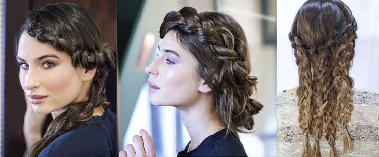 A trança é um penteado muito tradicional, mas o especialista se inspirou em tendências internacionais para criar três looks descontraídos para a primavera. A mulher pode optar por uma trança grossa como tiara com coque baixo, rabo de cavalo trançado com costura na frente ou quatro tranças que criam aparência de tapeçaria.