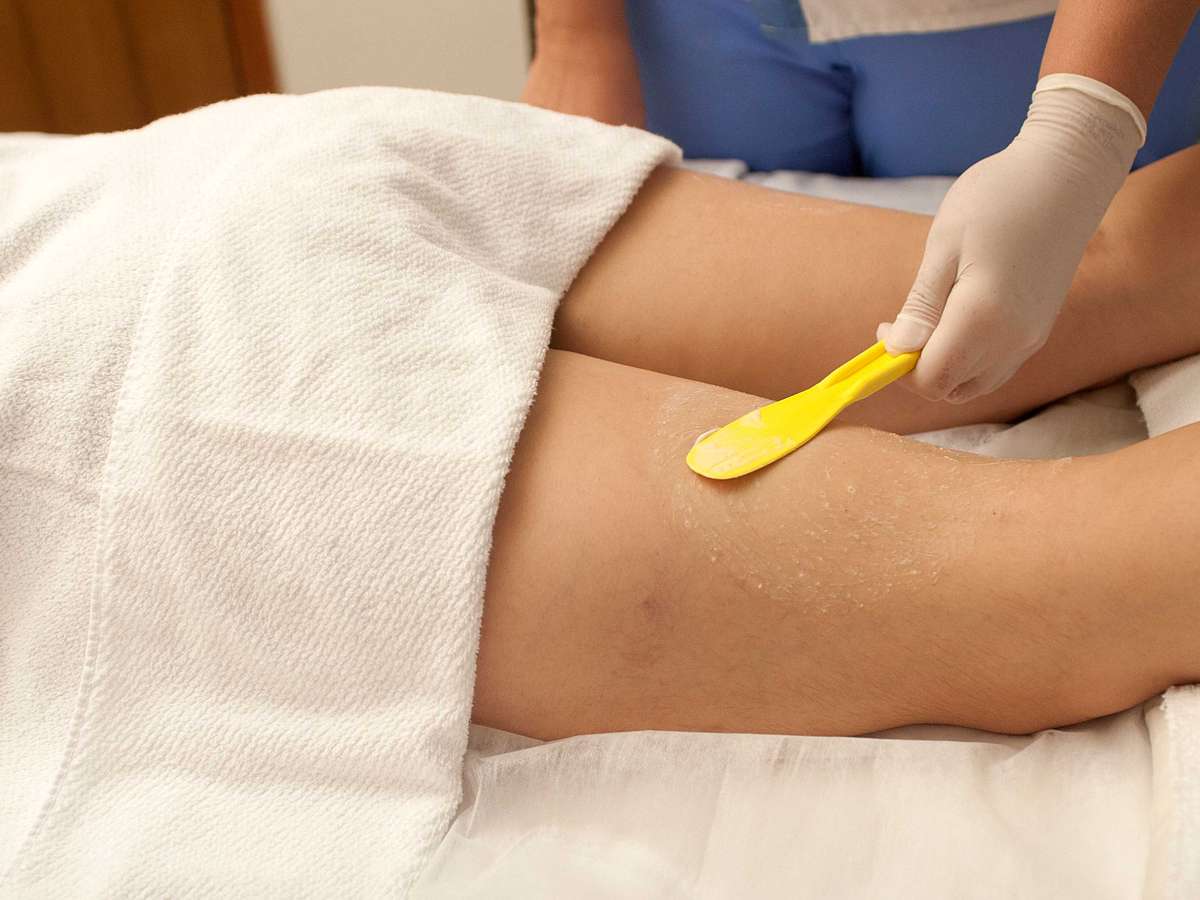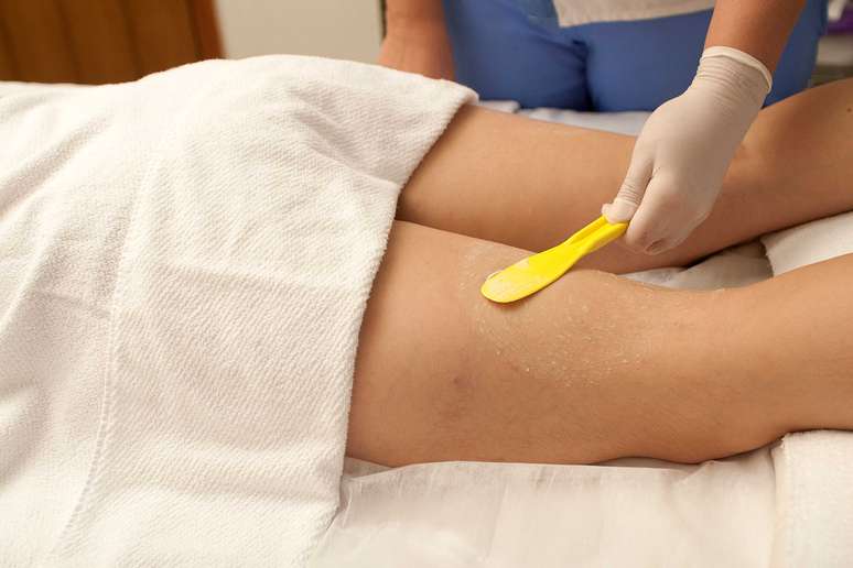 Depois de ser colocado nas regiões que passarão pelo tratamento, o esfoliante é retirado com uma toalha seca