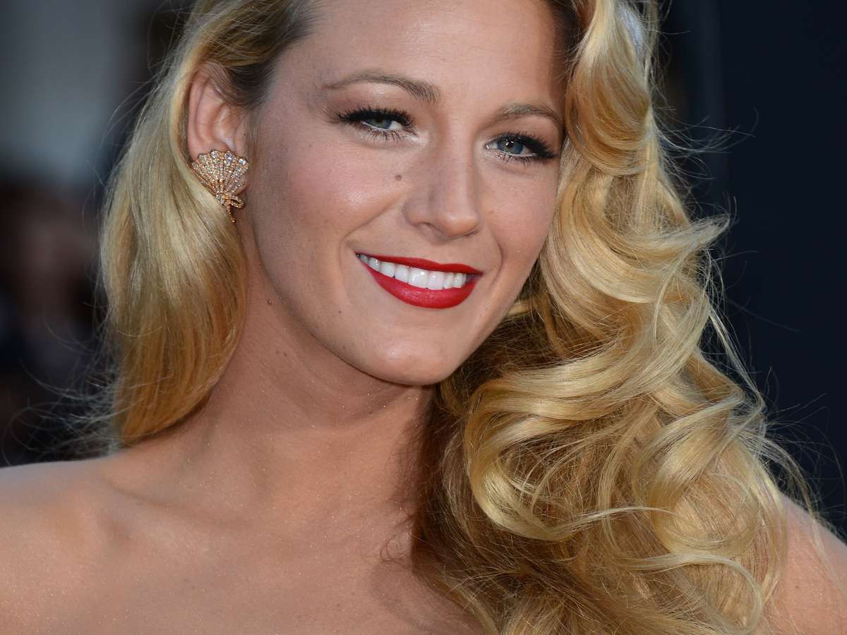 Glamour dos anos 20: a risca lateral com ondas marcantes e o batom vermelho caracterizam este look. Blake Lively é adepta do estilo