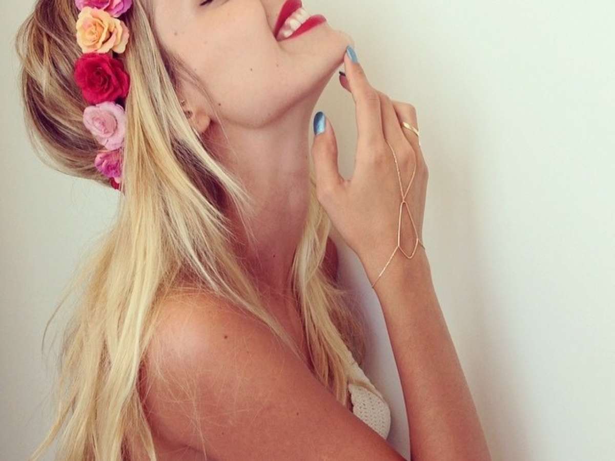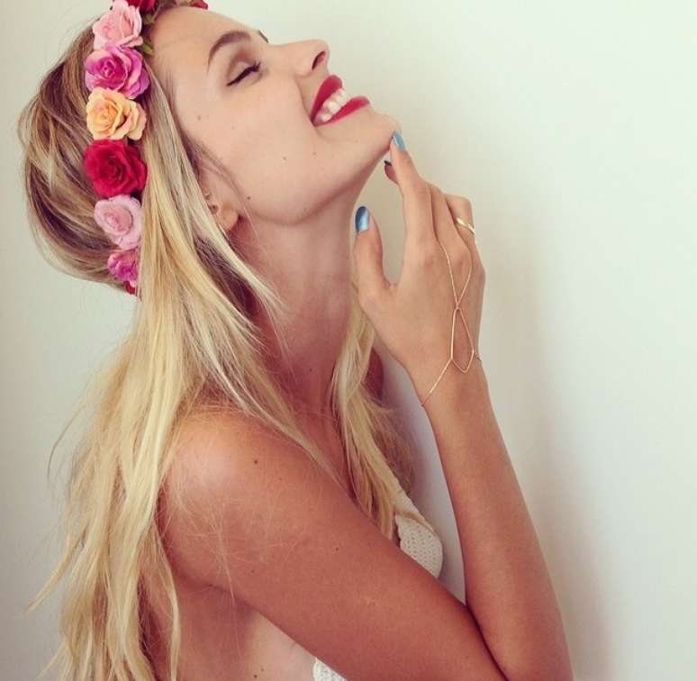 Yasmin Brunet deixou os fios soltos e usou uma tiara de flores, apostando em um look mais romântico para a folia
