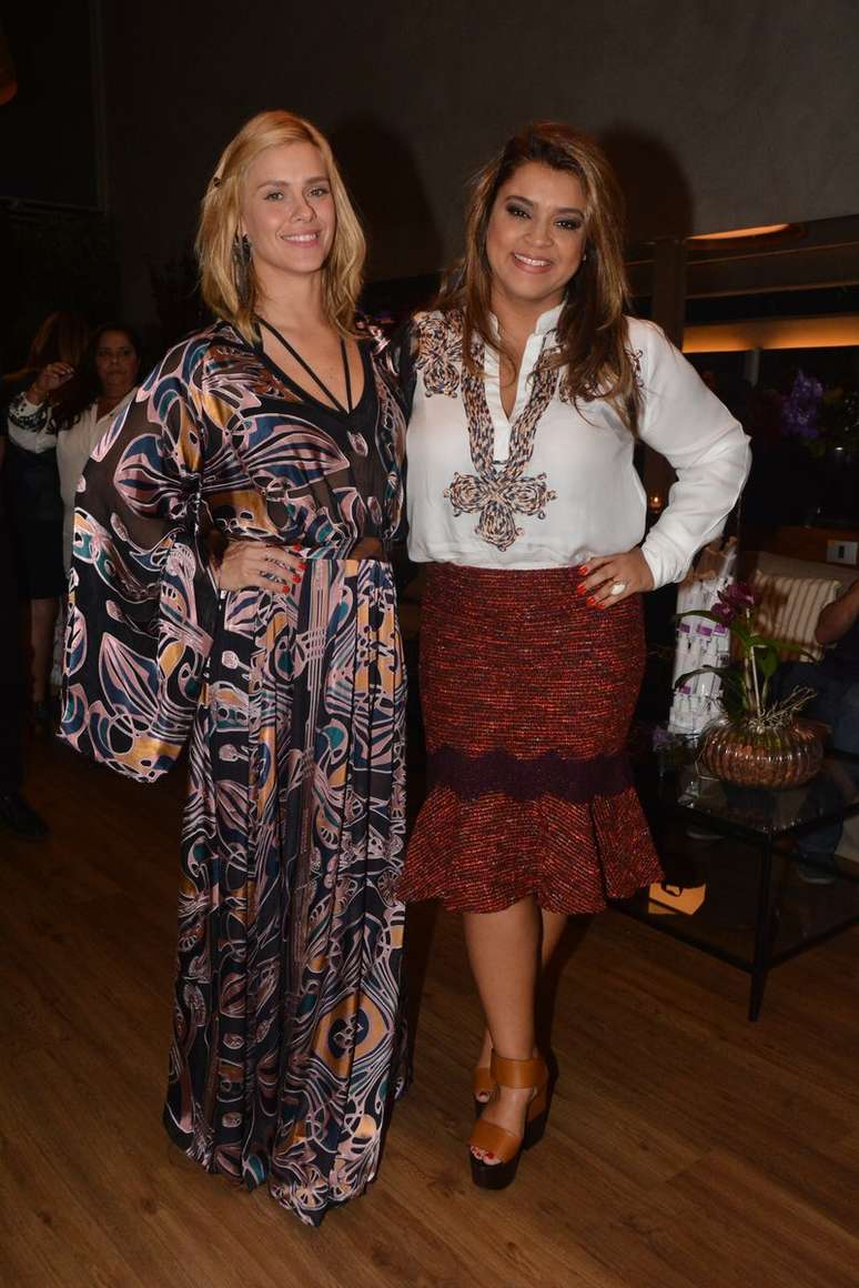 As amigas Carolina Dieckmann e Preta Gil estiveram em recente inauguração de novo espaço no salão Spa Dios, em São Paulo