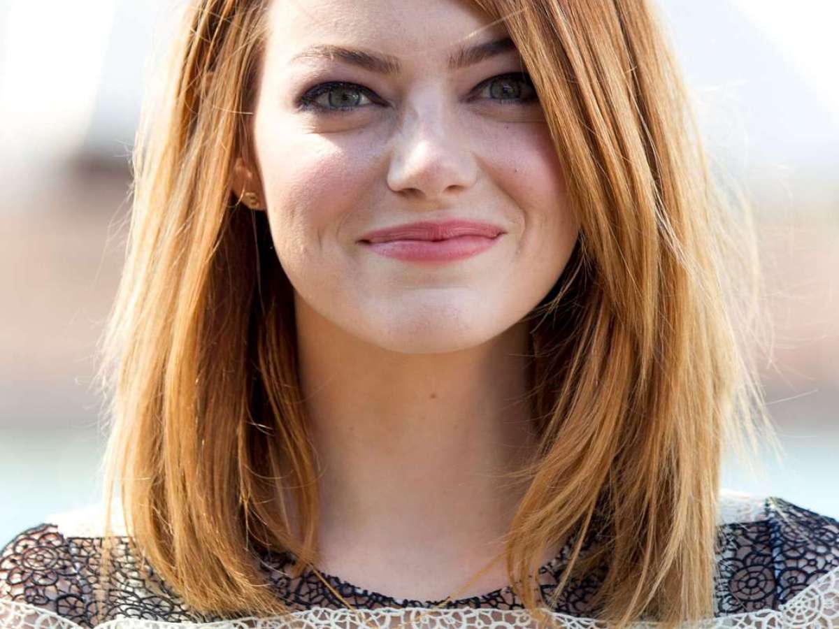 Contrastar a make com a cor do vestido foi a aposta de Emma Stone em Singapura, em 26 de março: "A sombra azul com o batom levemente rosa completaram a brincadeira de cores, sem carregar o visual", explica a maquiadora