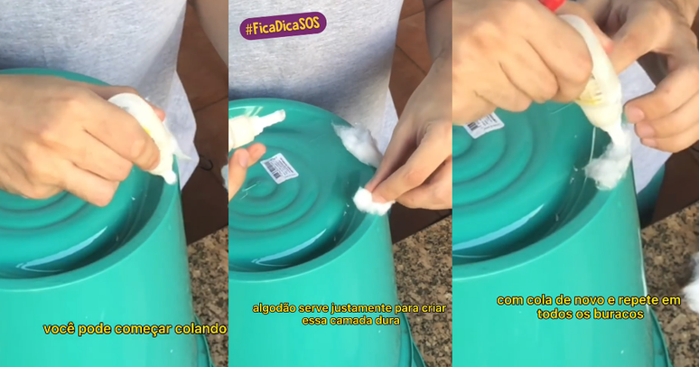 "Na falta do algodão, faça tipo uma massinha de super Bonder com bicarbonato… Fica igual pedra!", comenta o Eduardo Carvalho em nosso Facebook.