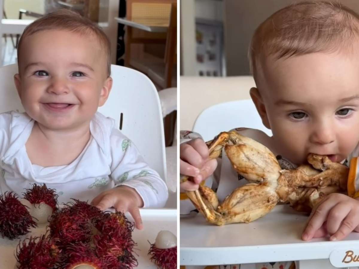 Bebê viraliza ao experimentar polvo e língua de boi durante introdução alimentar