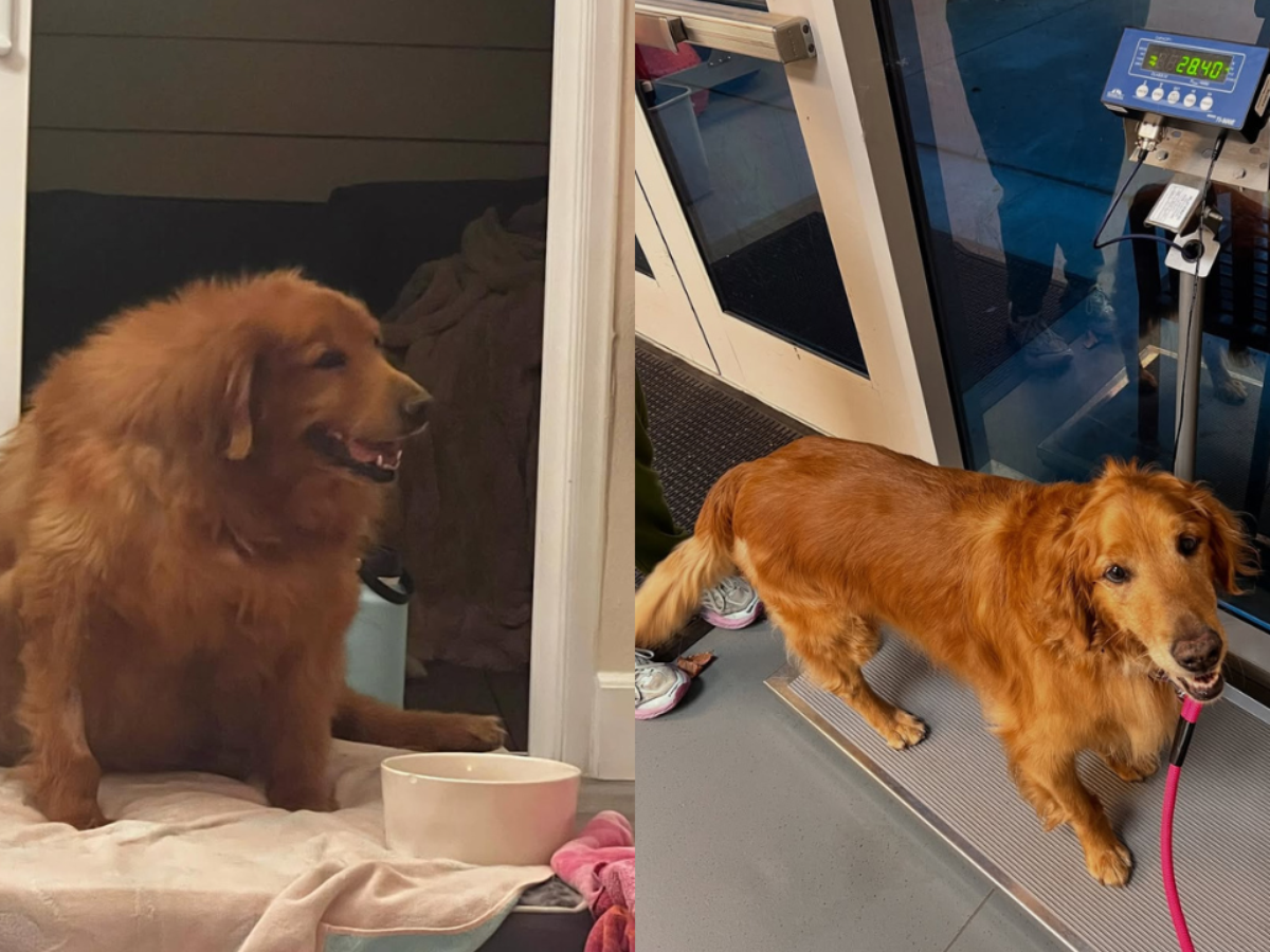 Antes do longo processo de recuperação, a Golden Retriever, que também sofria de hipotireoidismo, pesava 57 kg e se movimentava com dificuldade