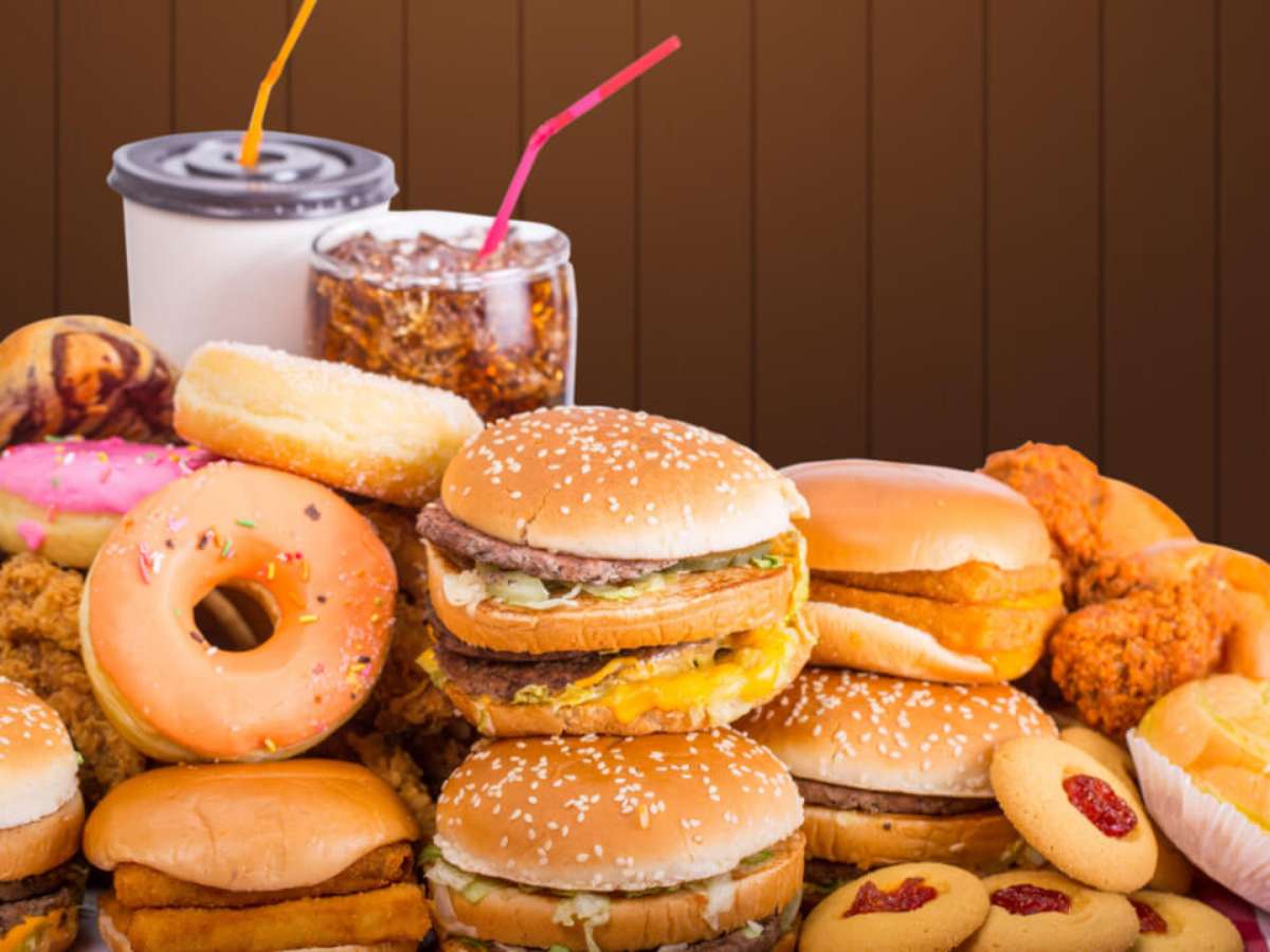 Refeições de fast food, como hambúrgueres, batatas fritas e refrigerantes, geralmente possuem grandes quantidades de carboidratos refinados, gorduras saturadas e sódio, e são conhecidas por promover o ganho de peso quando consumidas regularmente.