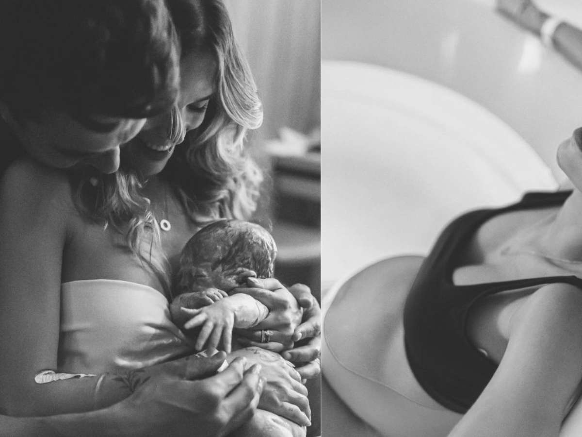 "A mala da Sarah estava pronta, mas a minha não estava, minha mãe em Goiânia, minha sogra em Natal, eu fazendo mala igual uma doida pensando na Esther, com quem ela ia ficar, como ela ia ficar… Na minha cabeça estourou a bolsa, o bebê nasce… ou seja, vamos correr para a maternidade! Chegamos na maternidade e eu disse bem rápido: "ela vai nascer hoje?" A Livia começou a explicar como podia ser… pq a bolsa estava rota mas eu estava com 3cm de dilatação, sem dores, sem contrações ritmadas, então tinha a opção de induzir e foi essa opção que eu escolhi".