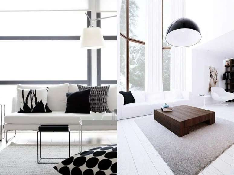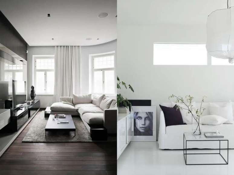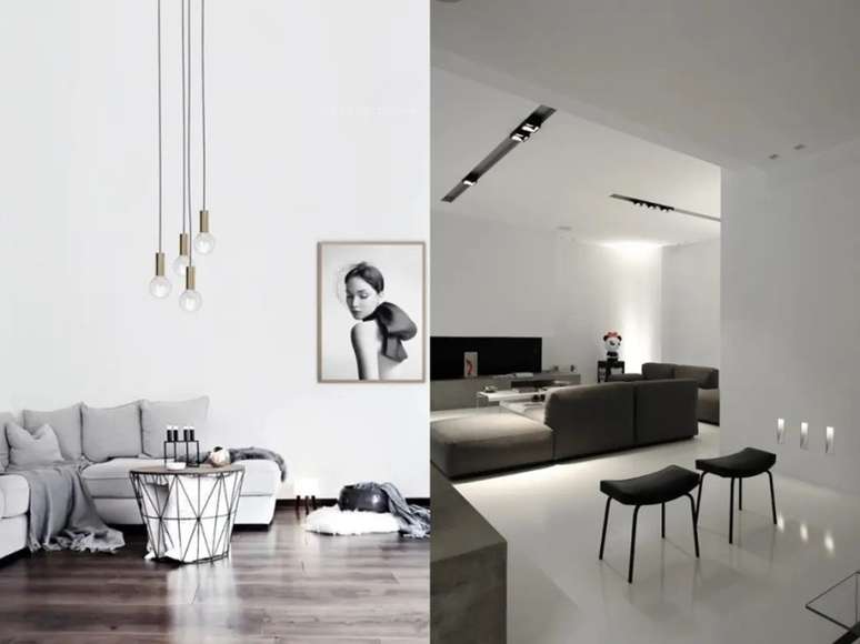 O que são esquemas de cores minimalistas? Em primeiro lugar, é preto e branco, um esquema de cores contrastantes clássico, que se adapta à maioria dos espaços e pode ser mais sombrio com mais preto ou mais neutro com apenas alguns toques de preto.